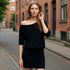 Avec son encolure échancrée, le Chandail JULIA dévoile une partie de l'épaule (un c&ocirc,té seulement) il est Ample et est offert avec les manches courtes ou trois quart