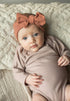 Bandeau en coton biologique doux et extensible. Le nœud noué est cousu et non ajustable