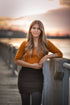 Notre mannequin Noemie mesure 5'6'' et porte du XS